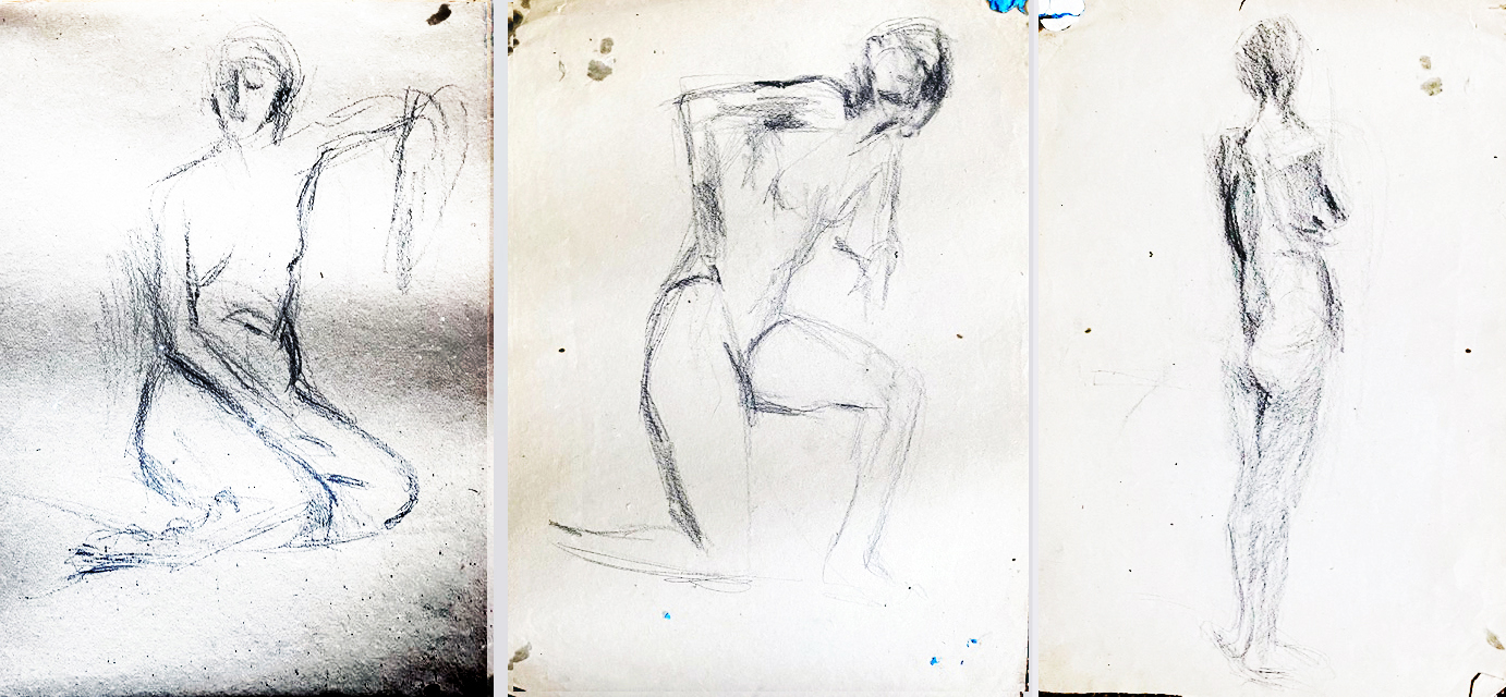 Hier habe ich drei Zeichnungen nach demselben Modell zusammengefasst.
