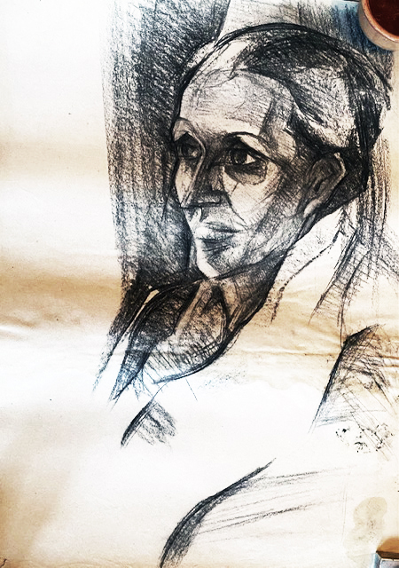Ich habe nicht alle Zeichnungen dieser Rolle fotografiert, weil es mir zu mühsam war. Dennoch sind es noch eine ganze Menge, nämlich 45, zu viel für einen Eintrag. Ich beginne mal mit den Portraits im engeren Sinne. Es sind nur vier. Sie zeigen aber die ganze Breite der verwendeten Zeichenstile.