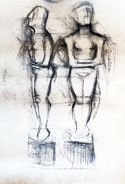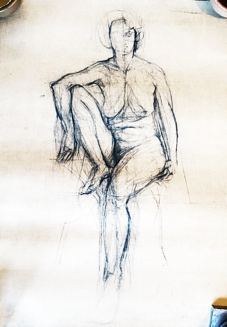 Die zweite Grunppe, die ich heute zeigen möchte, sind reine Körperstudien. Obgleich nicht der Anspruch besteht, den gezeichneten Menschen in seiner Individualität zu zeigen, sind manche Modelle leicht wiederzuerkennen. Denn selbstverständlich tragen nicht nur Gesichter, sondern auch die Körperformen und Haltungen individuellen Charakter.