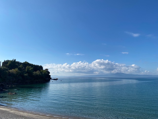 bis zur Sandova-Bucht, hier mit Blick zurück auf Akrogiali.