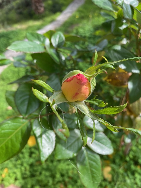 Als Zugabe der Natur eine weitere Knospe am Rosenbusch.