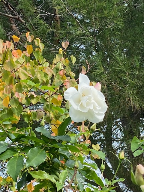 Heute wars die neu erblühte Rose, die den Aprikosenbaum grüßte und mich erfreute.