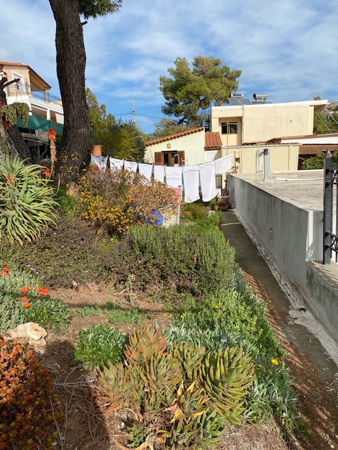 Ich vermute, die Menschen in dem Häuschen, vor dem die weißen Wäschestücke hängen, haben sich diesen Vorgarten angelegt.