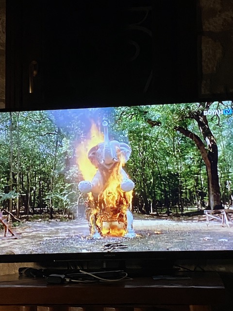 Dieser Elefant wird durch den neidischen, die armen Italiener verhöhnenden Regieassistenten abgefackelt.