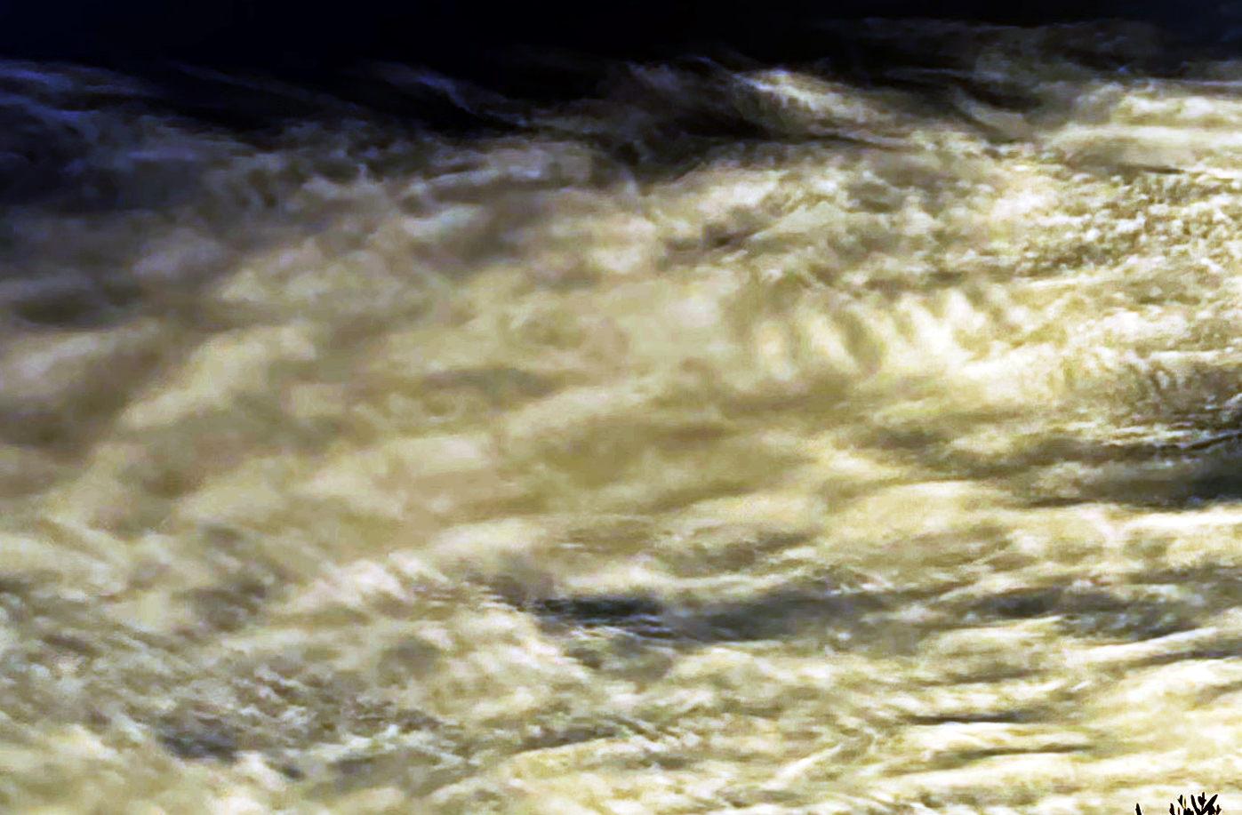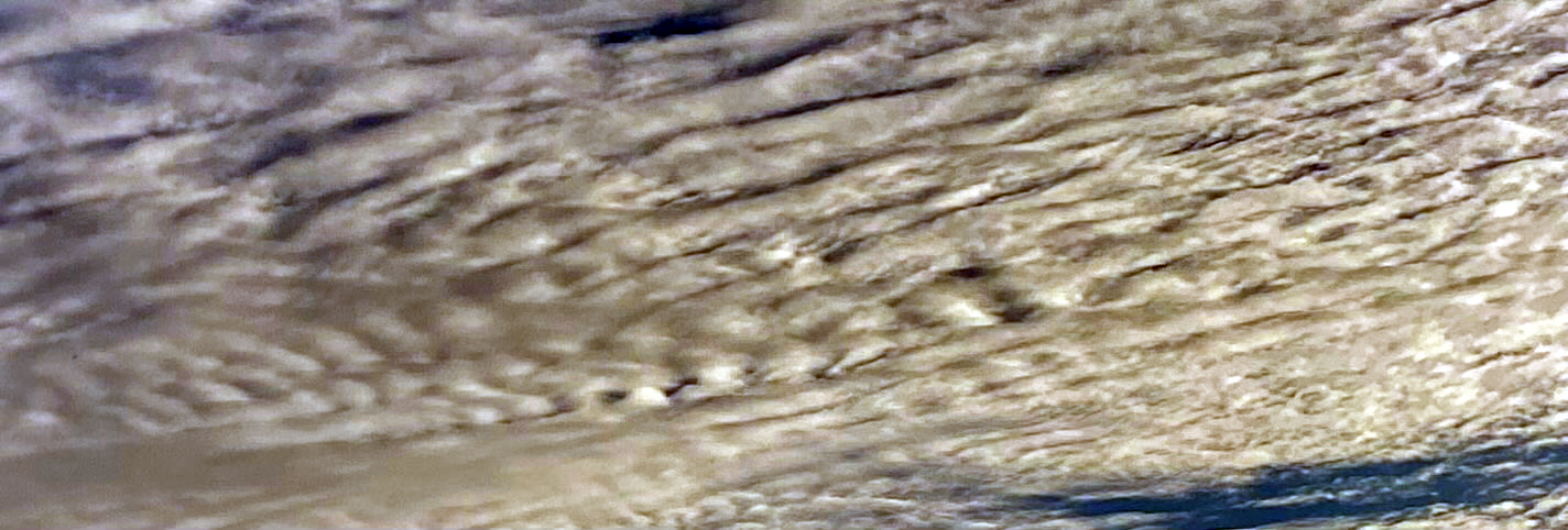 So wurde ich auch vorgestern stutzig: Es gibt in dem Gewölk rhythmische Strukturen, die ich mir nicht erklären kann. Also fotografierte ich sie und stelle sie nun ins Netz in der Hoffnung, dass mir jemand sagt, dass das alles „völlig normal“ sei, und mir erklärt, wie diese Strukturen zustandekommen.
