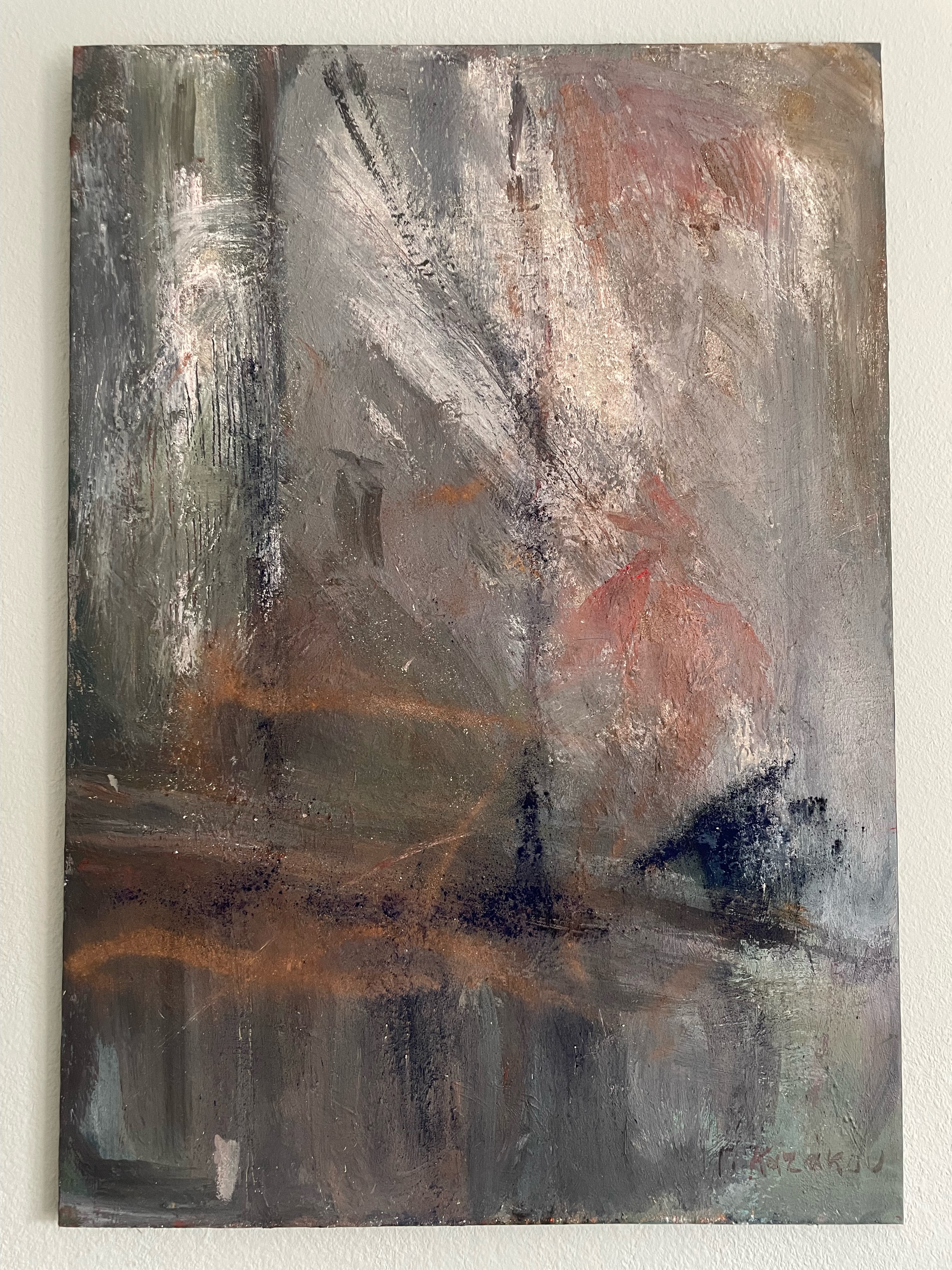 Heute freute ich mich, einige Bilder als Foto zugeschickt zu bekommen, die sich in einer privaten Sammlung in Deutschland befinden. Gemalt habe ich sie in den 90er Jahren, alle mit Pigmenten und Kleister auf Leinwand (1,2,5,6) oder auf Pappe (3-4). Die beiden männlichen Figurenbilder waren Teil einer Ausstellung im Goethe-Institut Athen, 1993. Die noch in meinem Besitz befindlichen habe ich bereits gezeigt, zur Erinnerung hier nochmal fünf der Serie (60×120 cm). DasFormat dieser jetzt hinzugekommenen Bilder ist etwas anders: 70×100 cm.