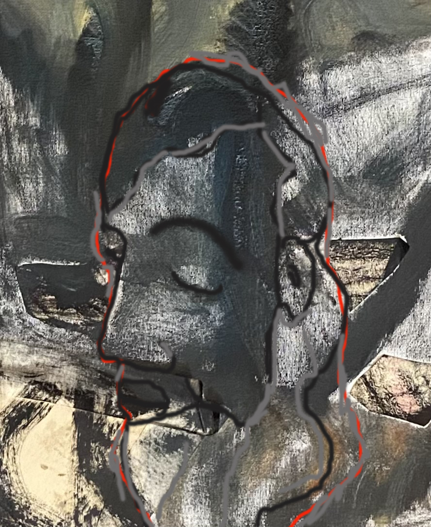 Ich sehe das Gesicht, jetzt wo du es gekennzeichnet hast. Aber noch immer sehe ich das was ich schon beim letzten „Stand“ des Bildes gesehen habe.
