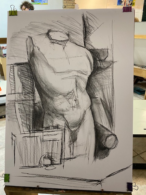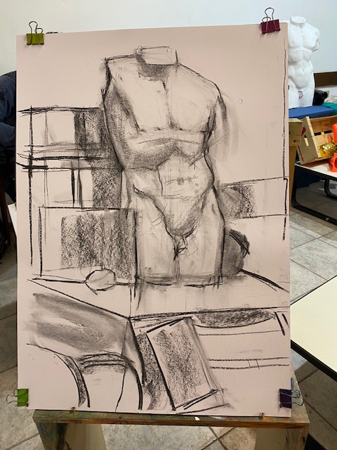 Im Zeichensaal war für mich noch Platz, ich durfte mich vor eine niedrige Staffelei setzen, mit Papier und Kohle und Radiergummi. Vor uns war ein Stilleben mit dem Torso aufgebaut, der vermutlich Rilke zu einem Gedicht animierte, das Christiane uns kürzlich wieder in Erinnerung rief, und das mit dem berühmten Satz endet „Ich muss mein Leben ändern“.
