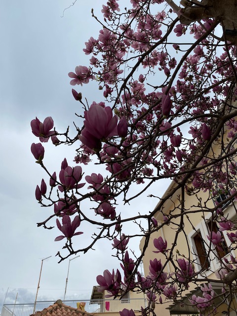 Dennoch mangelt es nicht an Schönem: Hier eine erblühte Magnolie…
