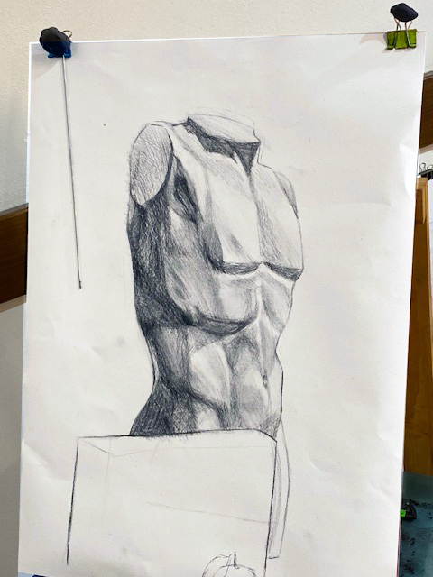 In der Zeichenschule (4): Werke anderer sowie mein Jünglingskopf
