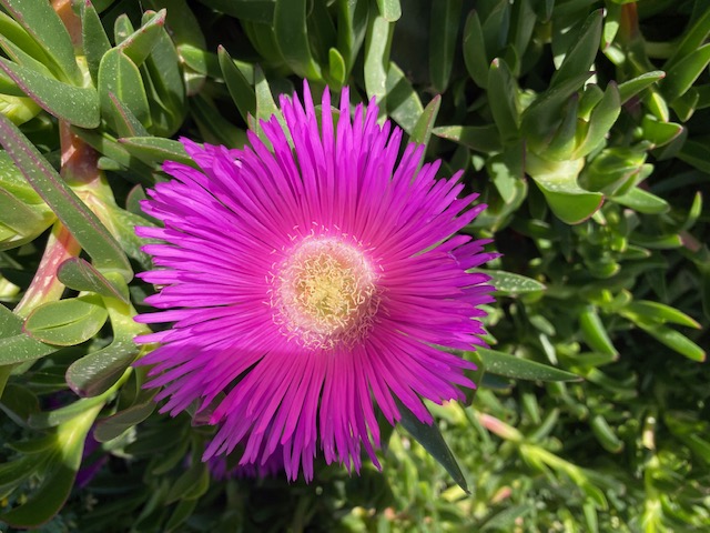Mittagsblumen sind robuster. Sie bilden große zusammenhängende Teppiche aus schweren feuchten Stielen und Blättern. Und wenn ihre Zeit gekommen ist, öffnen sie Blüte um Blüte.