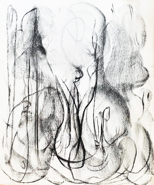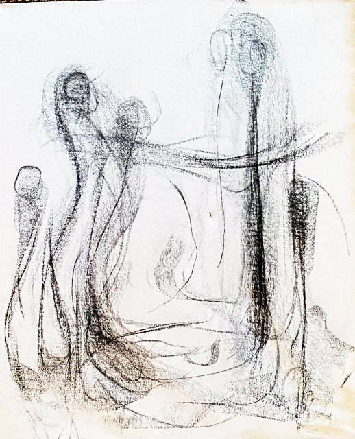 In letzter Zeit genieße ich es, ein Stück Kohle in die Hand zu nehmen und auf einer Leinwand damit herumzutändeln. Du kennst das Wort „tändeln“ nicht? Ich hab es gleich mal im Netz nachgeschaut und fand die dort gegebene Definition passend: etwas mehr in spielerisch-leichter als in ernsthafter Weise tun, ausführen, „mit dem Ball tändeln, statt aufs Tor zu schießen“.