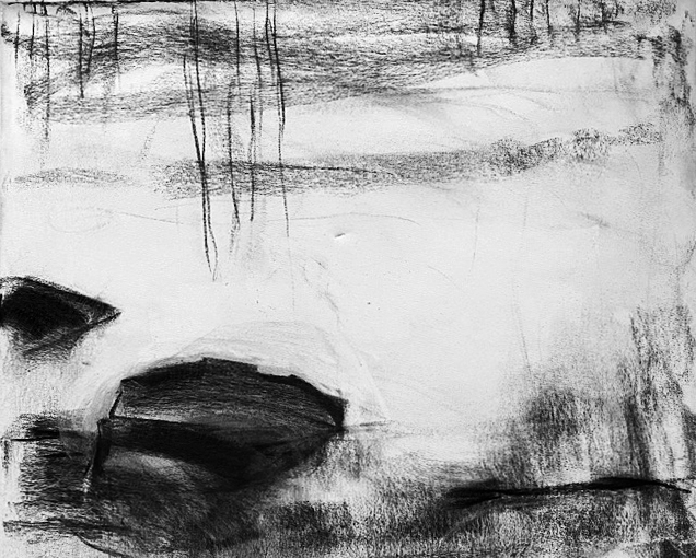 Super, das Donaubild gefällt mir besonders. Neblige Gischt um die Steine … Hast du die Farben umgedreht oder tatsächlich mit weißer Kohle/Kreide auf schwarzem Papier gezeichnet?