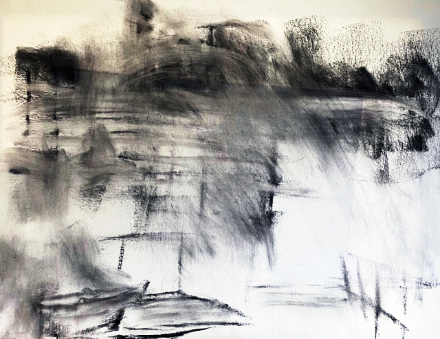 Seascapes und eine Ente (mit Kohle auf Leinwand zeichnen und auslöschen)