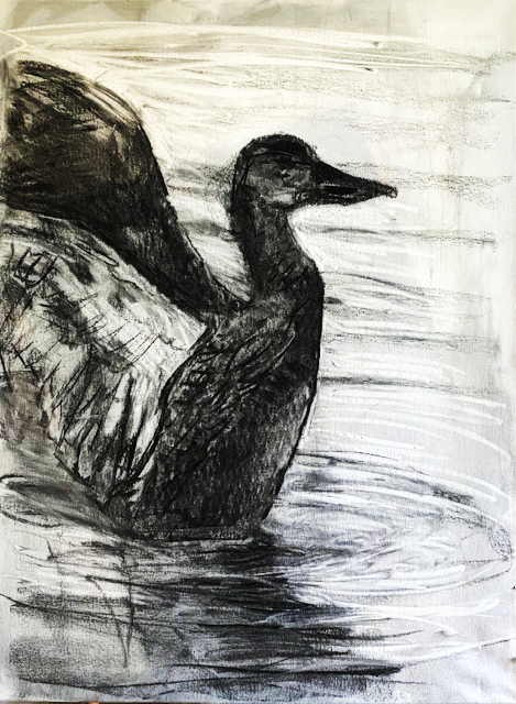 ← Seascapes und eine Ente (mit Kohle auf Leinwand zeichnen und auslöschen)