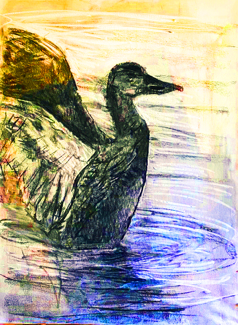 Seascapes und eine Ente (mit Kohle auf Leinwand zeichnen und auslöschen)