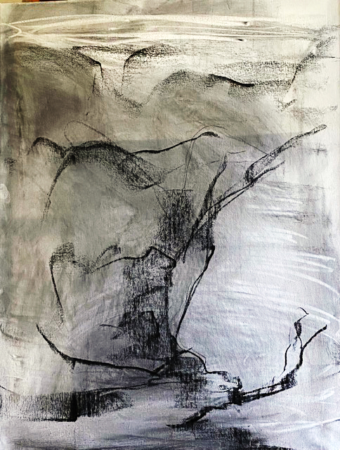 Seascapes und eine Ente (mit Kohle auf Leinwand zeichnen und auslöschen)
