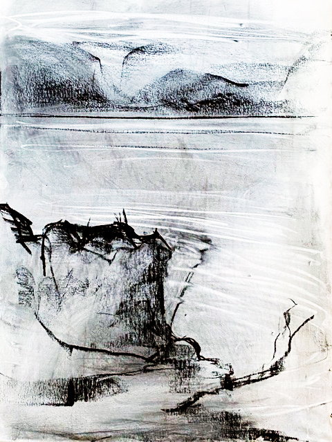 Seascapes und eine Ente (mit Kohle auf Leinwand zeichnen und auslöschen)