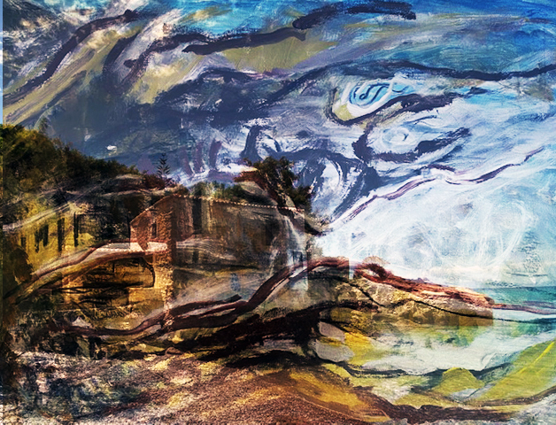 Ist die Inspirationen das Haus auf den Klippen ganz in der Nähe Deiner Bucht? Ich verknüpfe das irgendwie und finde Dein Bild sehr spannend! Ich sehe darin den Geist des Meeres, daß dem Haus irgendwie Schutz bietet! Meine Fantasie geht wieder mal mit mir durch, aber ich liebe Werke in die ich mich rein träumen kann! Richtig schön Gerda!👌🏻👍🏻