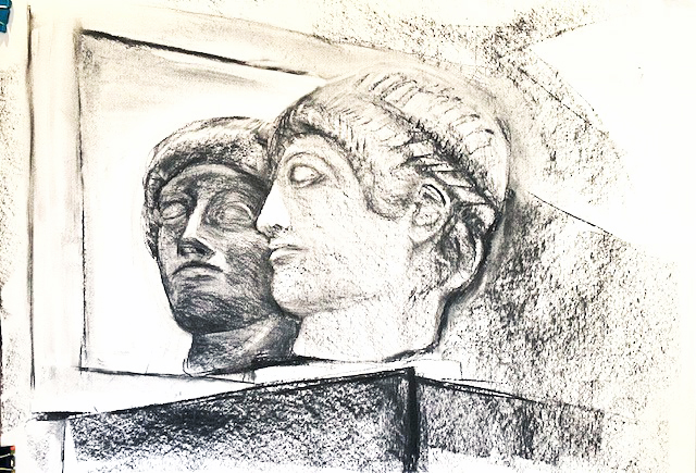 In der Zeichenschule 8, Ergänzung: Jünglingskopf und Alter Ego/Anima (Überblendung)