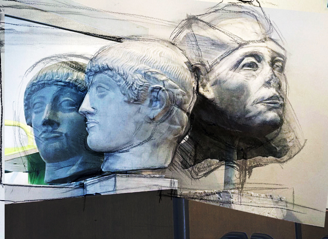 In der Zeichenschule (9): neuer Anlauf mit Jünglings- und Pharaonenkopf