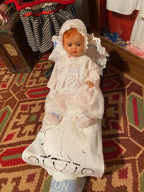 Prächtige Stickereien, Sonntagskleider, Trachtenkleider und die Lieblingspuppe der jetzt 93 jährigen Mutter, als sie ein Kind war.