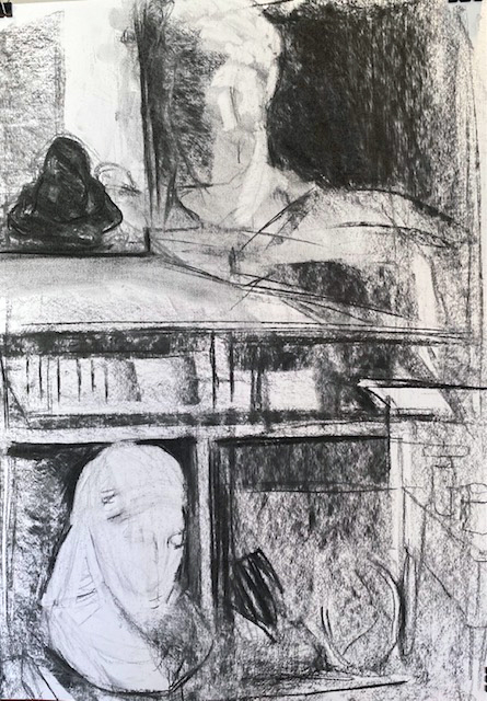 In der Zeichenschule 19: Doppelkopf im Raum und Jünglingskopf