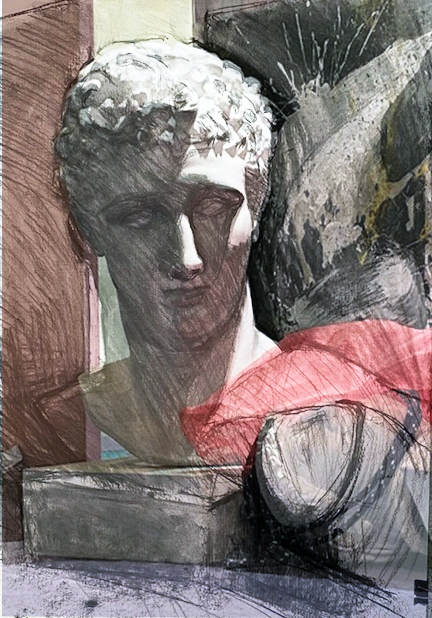 In der Zeichenschule 19: Doppelkopf im Raum und Jünglingskopf