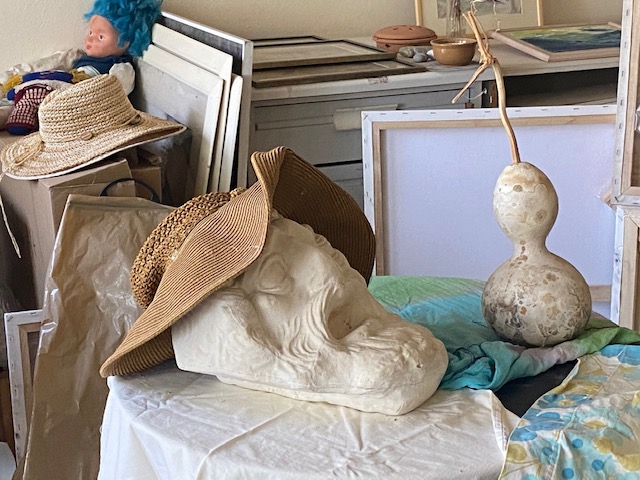 ← Maske im Atelier (4) mit Hut und Mme Kolokytha