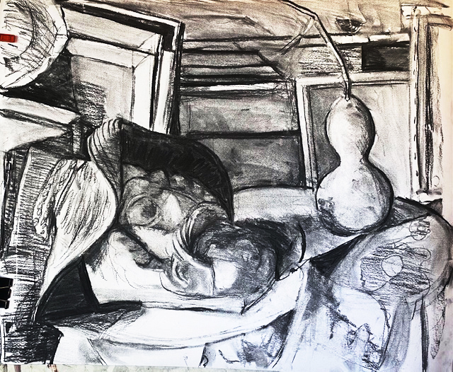 ← Maske im Atelier (4) mit Hut und Mme Kolokytha