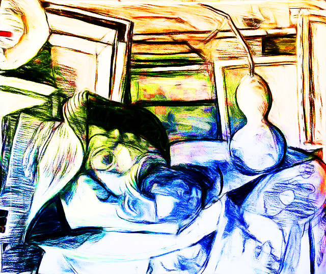Maske im Atelier (4) mit Hut und Mme Kolokytha