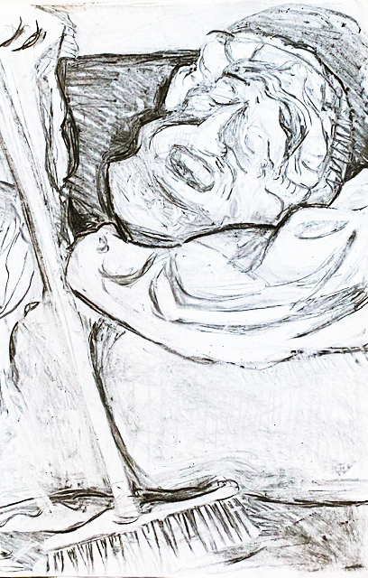 ← Maske im Atelier (6), mit Draperie und Besen