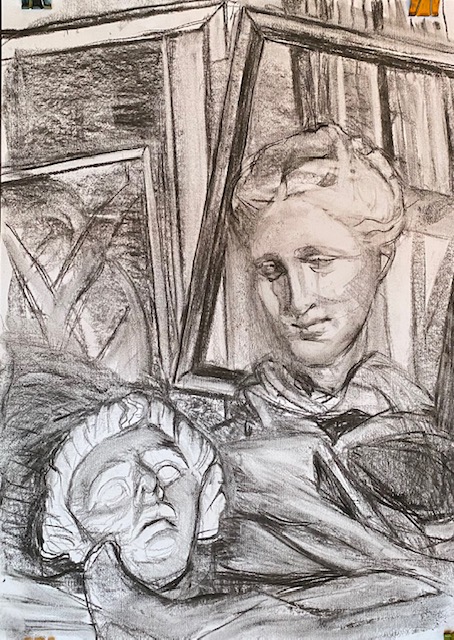Hygeia und Jünglingsmaske 5: vor den Bilderrahmen (mit unterschiedlicher Beleuchtung)