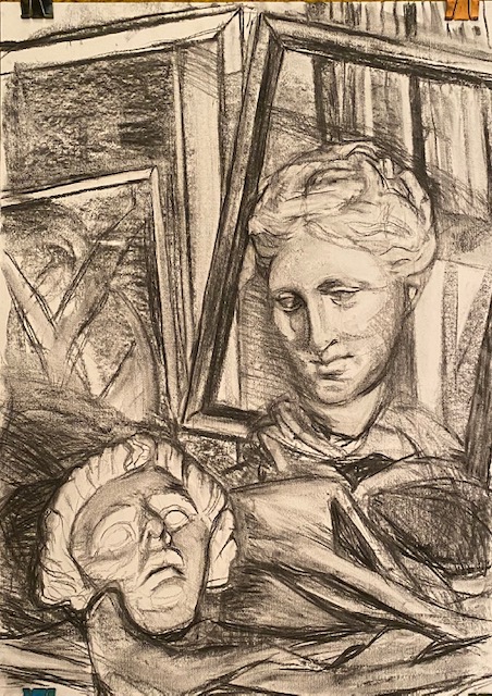 Hygeia und Jünglingsmaske 5: vor den Bilderrahmen (mit unterschiedlicher Beleuchtung)