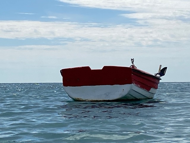 Außer mir schwamm heute nur ein Bötchen auf dem Meer.
