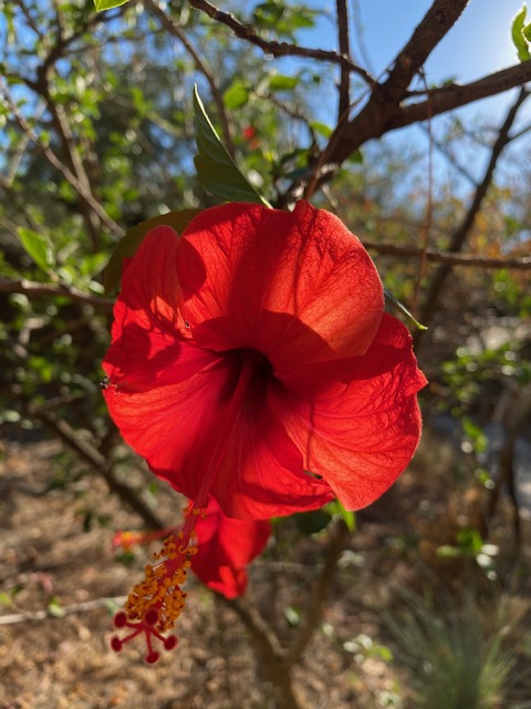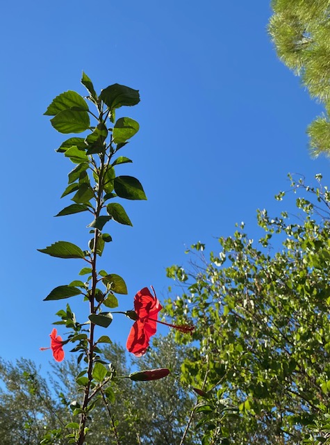 Ein wundervolles Rot, das Hibiskusrot. Bei uns sehe ich keines mehr und auch die Sonnenblumen mit ihrem leuchtenden Gelb verblühen schon.