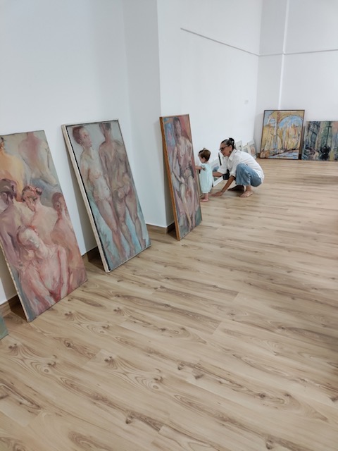 Heute abend war die Eröffnung der Ausstellung in Sofias Yogaraum. Schweißtreibend heiß war es, gemütlich und freundschaftlich. Zehn Bilder fanden neue Besitzer.