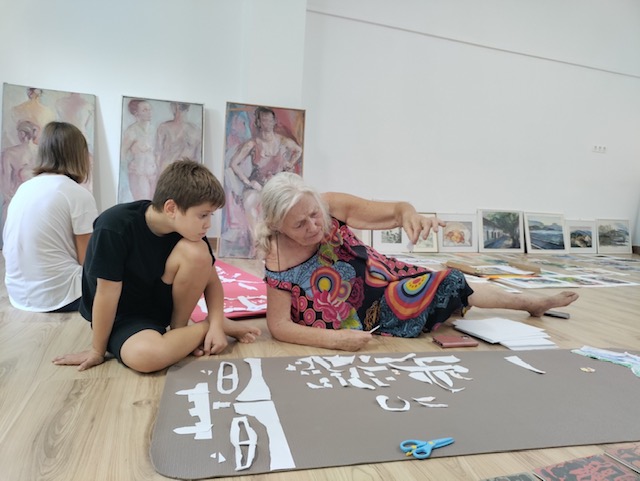 Und hier fordere ich einen kleinen Jungen heraus, indem ich ihm Schnipsel zeige und finster frage, ob sie etwa überflüssig seien? – und er protestiert und nimmt sie, um sie zu sorgfältig zu platzieren. Ich wiederhole dieses Spiel immer wieder, und immer wieder nimmt er das „überflüssige“ Schnipsel, sucht bedächtig und findet einen Platz dafür, und wir sind beide sehr zufrieden mit der Lösung.