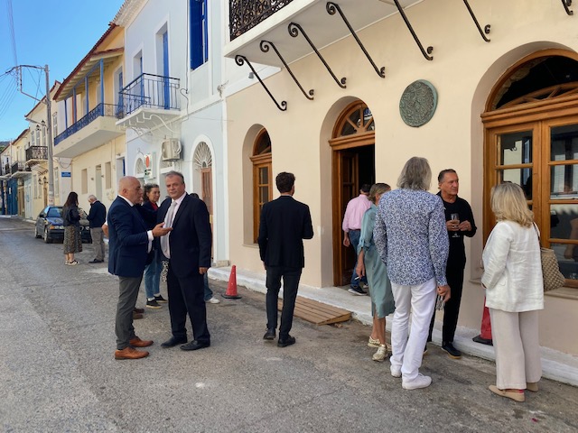In Griechenland wird der Namenstag mehr als der Geburtstag geehrt. Der Witz dabei ist, dass bei häufigen Namen gleich halbe Dörfer feiern: Maria, Konstantin, Eleni, Nikolaos, Katerina … und heute eben Dimitris (Hl. Demetrius) sind solche Gelegenheiten. Eingeladen waren wir von Dimitris Maniatakis, der in Koroni eine Familienstiftung gegründet (das Maniatakion) und zusammen mit seiner charmanten, aus Ägypten stammenden Frau Eleni zu einem Kultur-Hotspot ausgebaut hat.