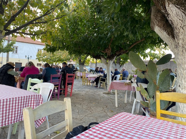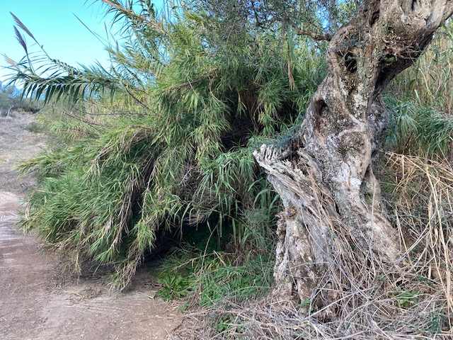 Zum Tanzplatz ging es durch wildere Natur. Die extreme Trockenheit ist überall zu spüren. Wolken zogen vor die Sonne, aber Regen kam nicht. Später in Kalamata fielen ein paar Tropfen, kaum genug, um den Staub auf den Straßen zu binden.