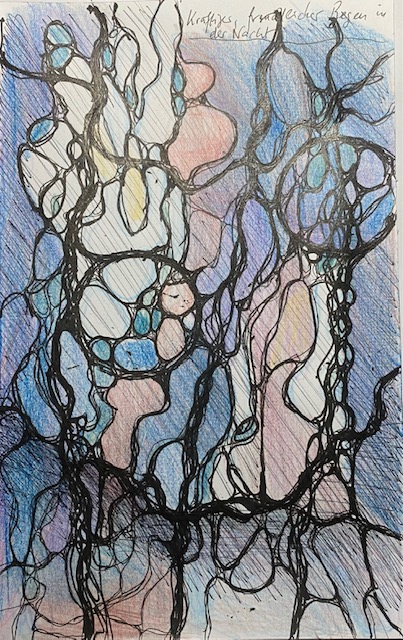 „Friedlicher kräftiger Regen in der Nacht“ (neugrografisches Zeichnen)