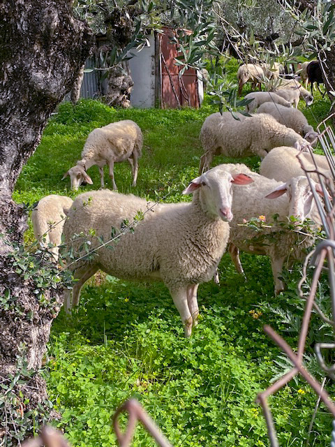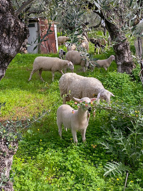 Zufrieden wirkten die winterblassen Schafe, die ich heute auf der grünen Wiese neben unserer Straße weiden sah. Dazu hatten sie auch jeden Grund, denn nicht nur gab es Gras, Kräuter und die Blätter des Gebüschs zu fressen, sondern auch die lieblichen Kleinen zu bewachen.