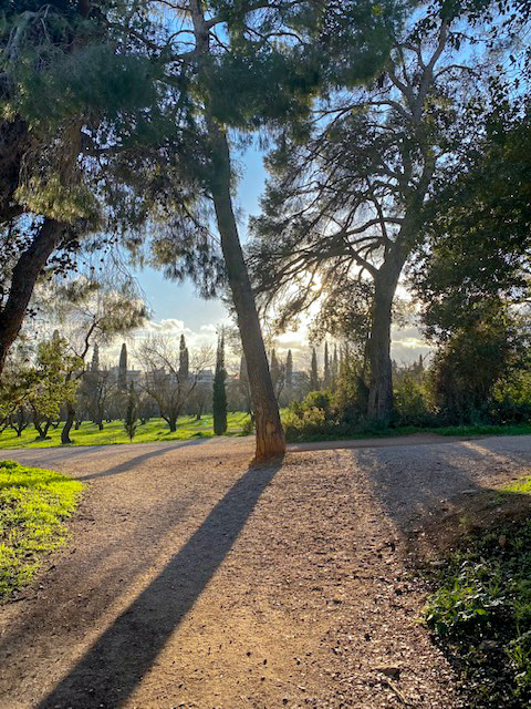 Windig war es und eisig kalt, aber die Mandelbäume stehen in voller Blüte. Ich sah es, als ich heute in Maroussi (nördlicher Vorort von Athen) meine Runden drehte.
