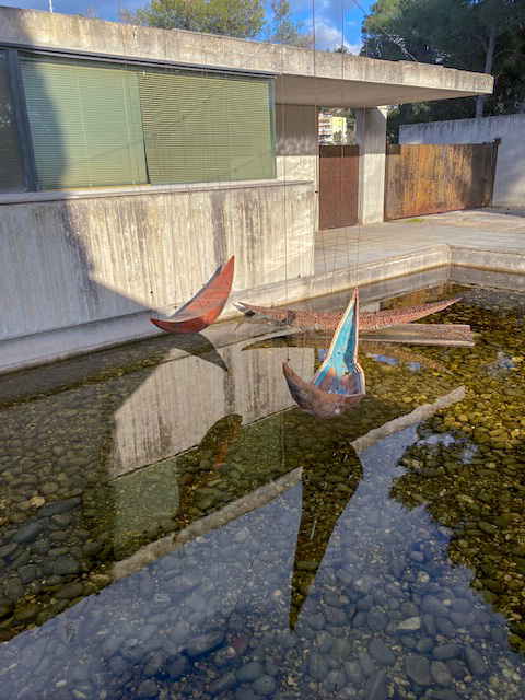 Das Licht wechselte ständig, je nach Wolkenstand. Als erstes schaute ich nach den „schwebenden Booten“ von Theodora Horafa, die bei meinem letzten Besuch im November über einem trockenen Becken schwebten (hier). Jetzt können sie sich wieder spiegeln.