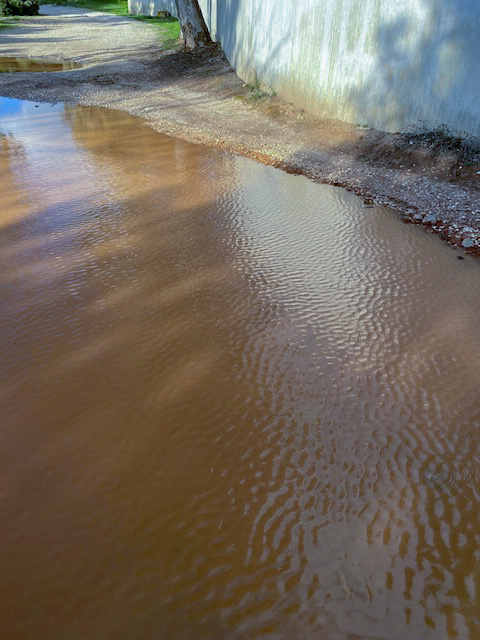 Auch die Wand der Ummauerung spiegelte sich – in einer großen Pfütze.