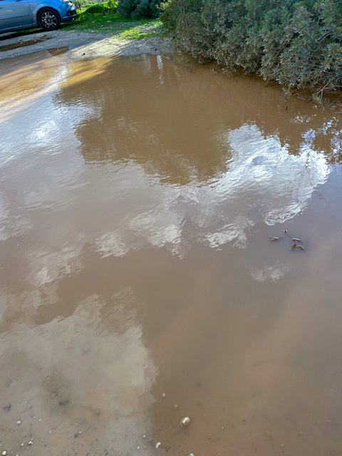 Pfützen haben für mich etwas Magisches, denn wann bekomme ich hier eine zu sehen? Und so stand ich und staunte über die Wellenmuster, die der Wind hineinblies…