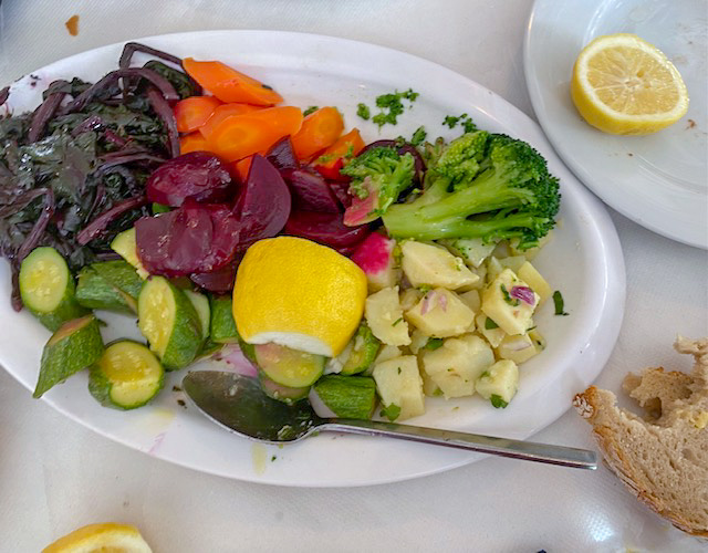 Als erster Gang erschien eine Platte mit gekochtem Gemüse …