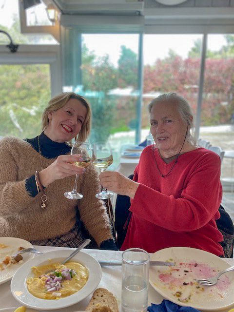 Der rote Pullover, nein, die ganze Gerda, ein wunderschöner Eindruck, und wie positiv Ihr beide in die Welt schaut!