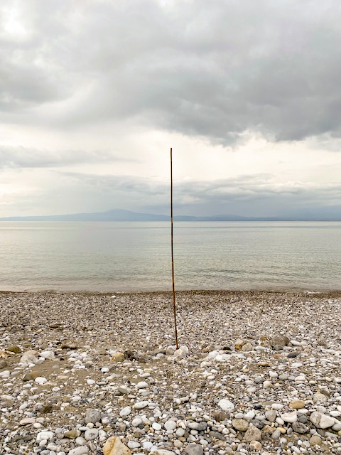 Am Strand pflanzte ich einen langen Stab auf, den ich gefunden hatte, um die Senkrechte im Waagrechten zum Ausdruck zu bringen.