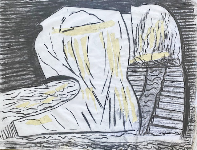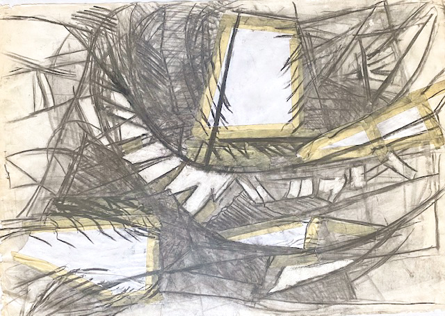 Heute habe ich mich daran gemacht, einige der großformatigen Kohlezeichnungen mit Klebeband, die durch die Verrußung des Ateliers arg gelitten hatten, zu restaurieren.